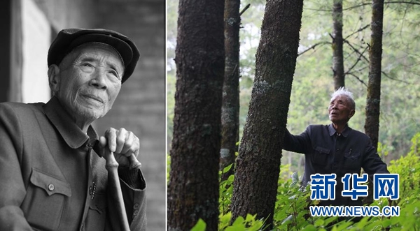 左圖:楊善洲的資料照片(2009年10月攝);右圖:楊善洲在大亮山林場(2009年攝)。云南省原保山地委書記楊善洲1988年退休后帶領(lǐng)群眾和林場職工,在施甸縣大亮山艱苦奮斗20多年創(chuàng)辦林場,造林5萬多畝,2010年10月因病逝世。新華社發(fā)