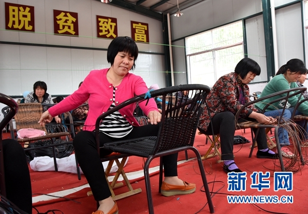 村民在鄄城縣陳王街道西曹村“扶貧車間”從事藤編加工(2016年4月14日攝)。山東省鄄城縣在當(dāng)前開展的就業(yè)扶貧工作中,積極鼓勵(lì)有條件的企業(yè)利用村小學(xué)舊址、村集體活動(dòng)場所舊址和閑置的民宅,在村里設(shè)置就業(yè)扶貧點(diǎn),幫助貧困群眾就近就業(yè)和脫貧。新華社記者周科攝