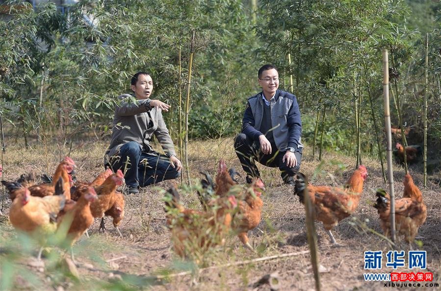 李寶強(右)在一戶百姓家了解林下養(yǎng)雞情況(2015年11月25日攝)。李寶強,眉山市青神縣瑞峰鎮(zhèn)天池村“第一書記”。為集中力量打好脫貧攻堅戰(zhàn),四川省選派1.5萬名優(yōu)秀機關(guān)干部到建檔立卡貧困村任職“第一書記”。黨的十八大以來,以習(xí)近平同志為總書記的黨中央高瞻遠(yuǎn)矚、深謀遠(yuǎn)慮,以高度的政治感、使命感和責(zé)任感,把扶貧開發(fā)工作提升至治國理政新高度,廣泛凝聚社會各界力量,推進(jìn)實施精準(zhǔn)扶貧方略,為到2020年全面建成小康社會奠定堅實基礎(chǔ)。按照中央部署,通過產(chǎn)業(yè)扶持、轉(zhuǎn)移就業(yè)、易地搬遷、政策兜底等方式,到2020年將實現(xiàn)7017萬農(nóng)村貧困人口脫貧目標(biāo)。新華社記者 薛玉斌 攝