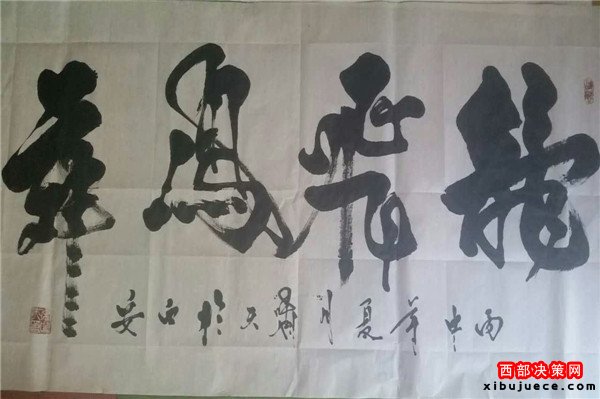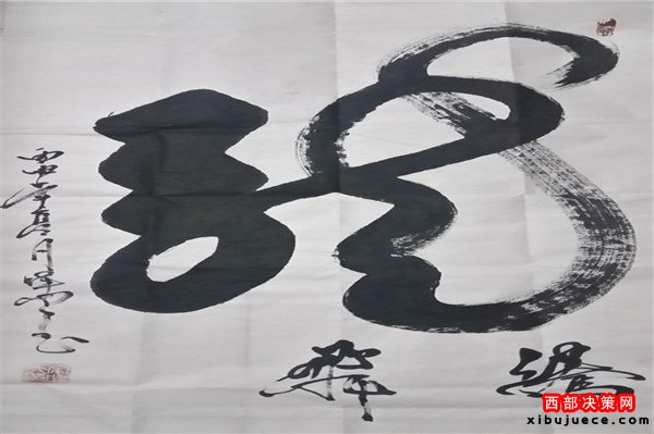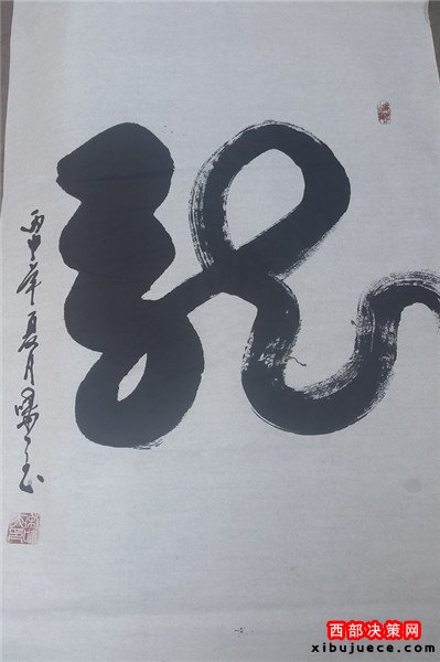 龍乃華人想象中最尊貴、最吉祥之物。生活之中無(wú)所不在,上下五千年,仍一以貫之,舉世無(wú)與倫比。華人更以龍的傳人自居,一旦風(fēng)起云涌,海生駭浪,則龍卷風(fēng)云,霞光萬(wàn)丈。其“一筆龍”書法作品將書法和繪畫非常巧妙的而高度的融合,依易經(jīng)智慧,集意念、氣功為一體,運(yùn)筆如神,酬勁有力,一氣呵成,氣勢(shì)磅礴,形象逼真。整個(gè)字體呈現(xiàn)出一條蒼龍騰躍飛天之勢(shì),寓意了中國(guó)龍騰飛吉祥的福兆,更展現(xiàn)了中華民族不屈不饒的民族精神。