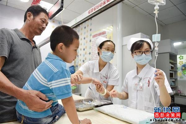醫(yī)改地方在行動。2016年8月,首期福建省內(nèi)10家公立醫(yī)療機構(gòu)正式簽訂協(xié)議,成立福建首個婦幼醫(yī)聯(lián)體。圖為在福建省婦幼保健院,醫(yī)護人員為患兒打點滴。