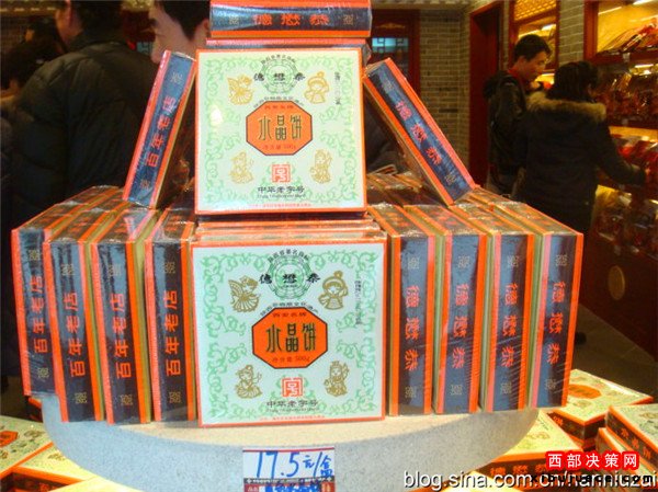 誕生:坐落在西安市西大街廣濟(jì)街口的中華老字號(hào)“德懋恭”,始建于清朝光緒年間(1872年),問世至今已有144年的歷史。清末慈禧太后來(lái)西安避難,經(jīng)過廣濟(jì)街口聞香止輦,品嘗了“德懋恭”水晶餅后大加贊賞,遂將其欽點(diǎn)為“貢品”,“德懋恭”水晶餅自此身價(jià)倍增,聞名遐邇。