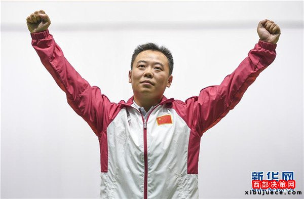 9月8日,董超在比賽后慶祝。當日,在2016年里約殘奧會射擊R1-SH1級別男子10米氣步槍站姿決賽中,中國選手董超以205.8環(huán)的成績奪得冠軍。