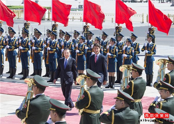 8月31日,國務(wù)院總理李克強在人民大會堂東門外廣場為特魯多舉行歡迎儀式。