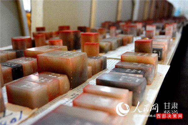 同時(shí),敦煌正覺寫經(jīng)院又組織篆刻書寫了50米真絲長卷的《道德經(jīng)》,并附20幅老子出關(guān)圖。該長卷采用篆刻方式,先將《道德經(jīng)》全文篆刻在大小不等的壽山石印章上,再將印章按照經(jīng)文順序印在真絲絹和皮紙上。每一句經(jīng)文刻一枚印章,刻章用的壽山石達(dá)一噸有余。