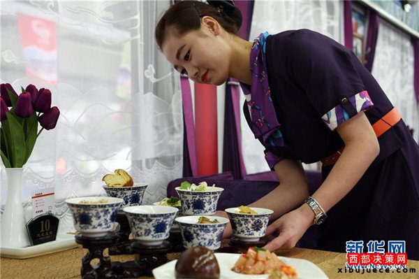 9月27日,“蘭州新區(qū)號”列車工作人員為旅客準(zhǔn)備蘭州風(fēng)味特色餐食。當(dāng)日,首趟以“蘭州新區(qū)號”冠名的K861/2次和以“蘭州國際港務(wù)區(qū)號”冠名的K1042/41次“絲路快車”相繼從蘭州火車站發(fā)車,蘭州鐵路局以“絲路快車”為主題的列車至此已達(dá)23對。據(jù)了解,“絲路快車”創(chuàng)新鐵路客運供給與服務(wù),在普通旅客列車的基礎(chǔ)上,提升改造列車硬件設(shè)施,營造列車絲路文化氛圍,提高列車員服務(wù)水平,帶給旅客全新出行體驗和服務(wù)。