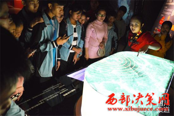 圖為工作人員正為前來參觀的孩子們講解地震知識。