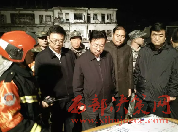 10月24日14時(shí)03分,府谷縣新民鎮(zhèn)打井塔村一處彩鋼房?jī)?nèi)發(fā)生不明物爆炸事故,造成重大人員傷亡和財(cái)產(chǎn)損失。事故發(fā)生后,榆林市委書(shū)記胡志強(qiáng),市長(zhǎng)尉俊東,市委副書(shū)記、政法委書(shū)記高中印,市委常委、府谷縣委書(shū)記杜壽平,市委常委、榆林軍分區(qū)司令員田繼光趕赴事故現(xiàn)場(chǎng)指揮救援。