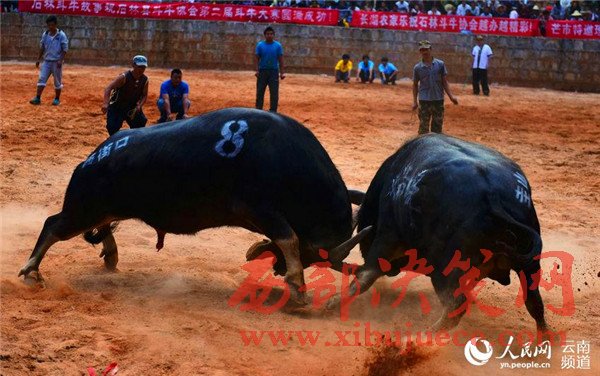 云南石林:60余頭斗牛爭(zhēng)“牛王”喜迎縣慶60周年