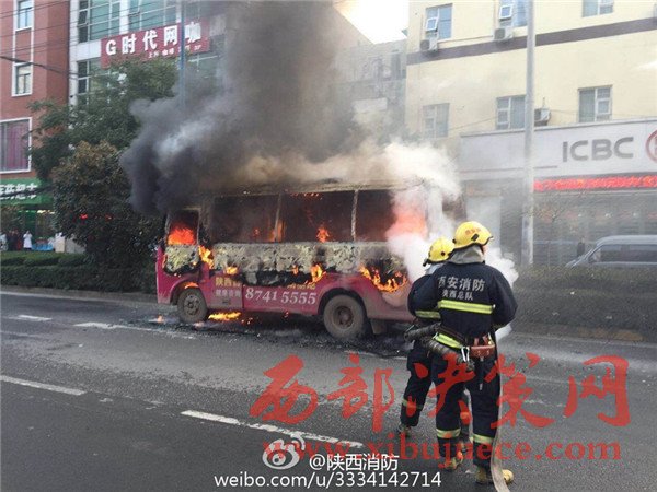 西安一公交車今晨著火大火已被撲滅無人員傷亡