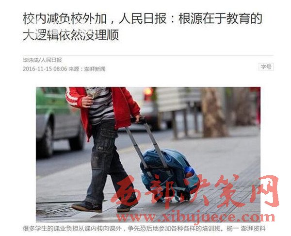 是學(xué)校錯(cuò)了嗎?學(xué)校響應(yīng)行政命令,給學(xué)生減負(fù)。這幾年學(xué)生的課業(yè)負(fù)擔(dān)從校內(nèi)轉(zhuǎn)到校外,從側(cè)面說明減負(fù)也有了一定成效。