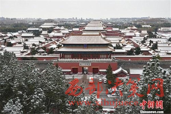 小雪前夕,11月21日,北京迎今冬首場(chǎng)降雪。雪后的紫禁城一片銀裝素裹。