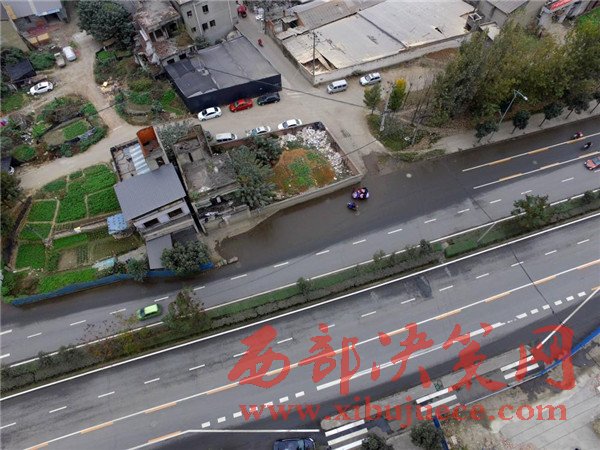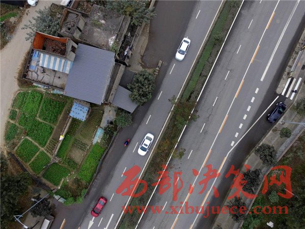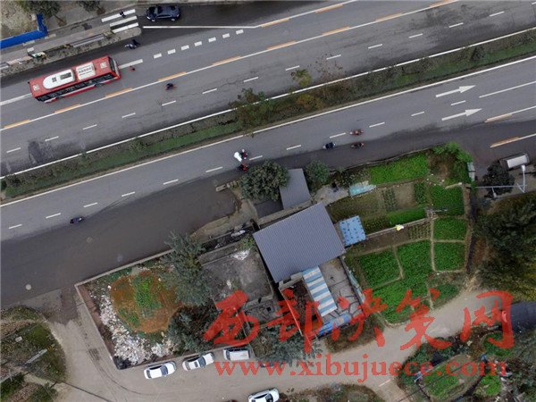 這棟房子屋前的院壩、自留地占據(jù)了進(jìn)方向的兩條車道。2008年擴(kuò)建這條路之前,這棟民房就已經(jīng)立在這里,至今已有8年時間。
