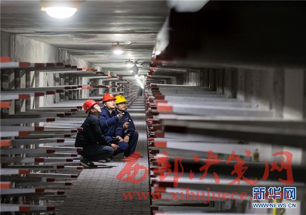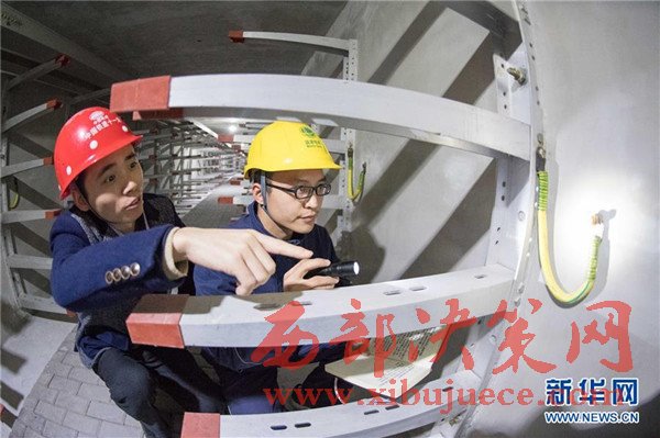 11月24日,解放碑地下環(huán)形電力隧道的一段支線電力隧道內,兩名國網重慶市區(qū)供電公司的技術人員(右一、右二)在對預留的商業(yè)用戶接入隧道的電力設施設備進行竣工驗收。當日,經過3年多的緊張建設,重慶地下環(huán)形“電力高速路”——解放碑地下環(huán)形電力隧道工程順利通過竣工驗收,并正式投入運行。解放碑環(huán)形電力隧道總長2408米,其中1198米的干線電力隧道已經成功接入解放碑商圈及周邊地區(qū)的4個110千伏變電站形成環(huán)線,支線電力隧道1210米也開始陸續(xù)接入用戶。據(jù)介紹,作為重慶市重點工程,2013年7月開工建設的解放碑地下環(huán)形電力隧道按照滿足未來20年電力需求設計,隧道高2.8米、寬2.4米,投入運行后將解決重慶渝中半島和重慶最繁華的解放碑商業(yè)區(qū)配電設施老化、無法擴建等問題,使解放碑商圈供電負荷承載能力得到極大加強。