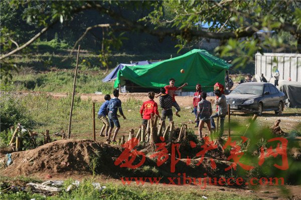 據(jù)邊民張賽亞稱,20日當(dāng)天早晨7點(diǎn)多,村子里聽到槍炮聲,村民們生怕被流彈所傷開始逃跑躲避,他家住在畹町河岸,他看到除了橋上騎著摩托車往中國的村民,河里還有蹚水的村民成群結(jié)隊(duì),他們也就跟著跑到了中國,家里的牛羊那些現(xiàn)在無人照看,村里只留有少部分人,他們出來的不敢回去。在安置點(diǎn)能吃飽睡好,等過一陣子再回去看看。圖為一群緬甸小孩在岸邊踢足球。