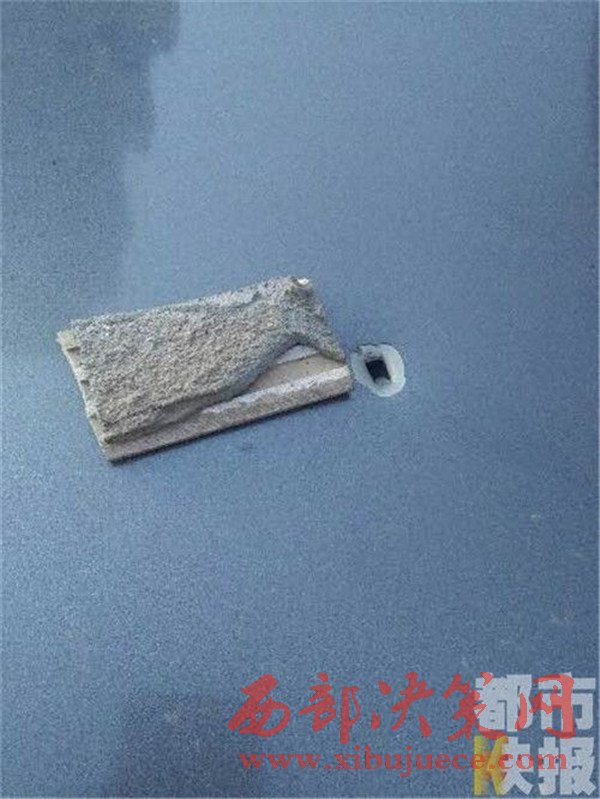 車后一聲響飛來橫"禍",男子愛車后備箱被瓷磚砸穿。