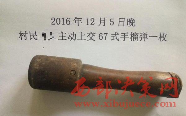 紫陽東木鎮(zhèn)村民冉某來到東木派出所,主動上交了一個(gè)自己一直用來砸核桃的物件,民警一看吃了一驚,這個(gè)東西竟然是67式手榴彈!民警立即進(jìn)行了檢查,該手榴彈雖然沒有拉火裝置,但是不能確定彈體內(nèi)是否還有炸藥。
