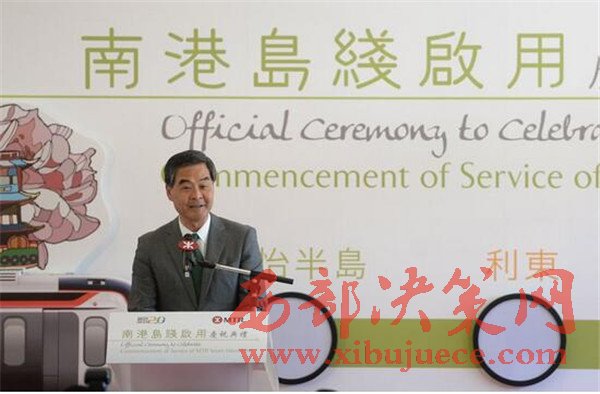 梁振英在致辭時(shí)表示,他一直是香港鐵路服務(wù)的“粉絲”,十分樂(lè)于見(jiàn)證新的鐵路交通線的啟用。此前開(kāi)通的觀塘線沿線以及此次南港島線東段的啟用,都將令香港的鐵路網(wǎng)絡(luò)更加四通八達(dá)。