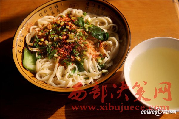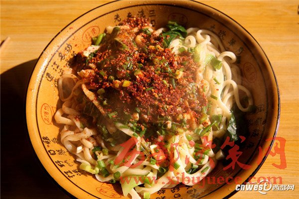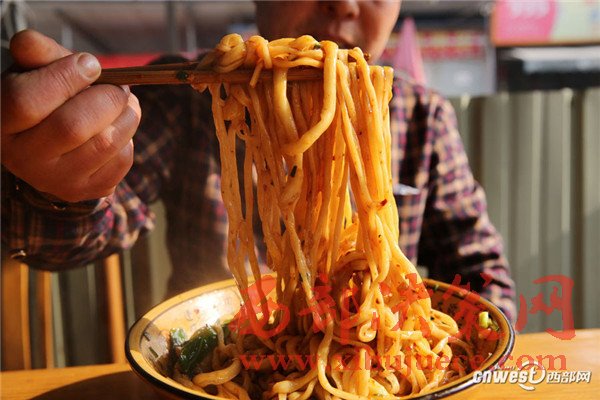 將煮熟的面和青菜撈在大碗里,澆上熱氣騰騰的油潑辣子就成油潑面,也可以澆上炒好的西紅柿雞蛋,或炸醬。
