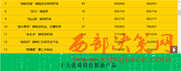 就投票結果來看,其他糧油產品如遵義湄潭縣的“余鄉(xiāng)多”牌純菜籽油、銅仁沿河縣的“麻陽河”牌銅仁珍珠花生產品等均獲得了超過70萬票的網友支持。據(jù)主辦方介紹,這次進入票選的49個產品均是由省內各地送選質量好品質佳口碑好的糧油產品,經過層層篩選后才在網絡上接受市民“檢閱”,當?shù)卣⑵髽I(yè)、市民紛紛踴躍投票,都來為心中最佳特色糧油產品投出一票。