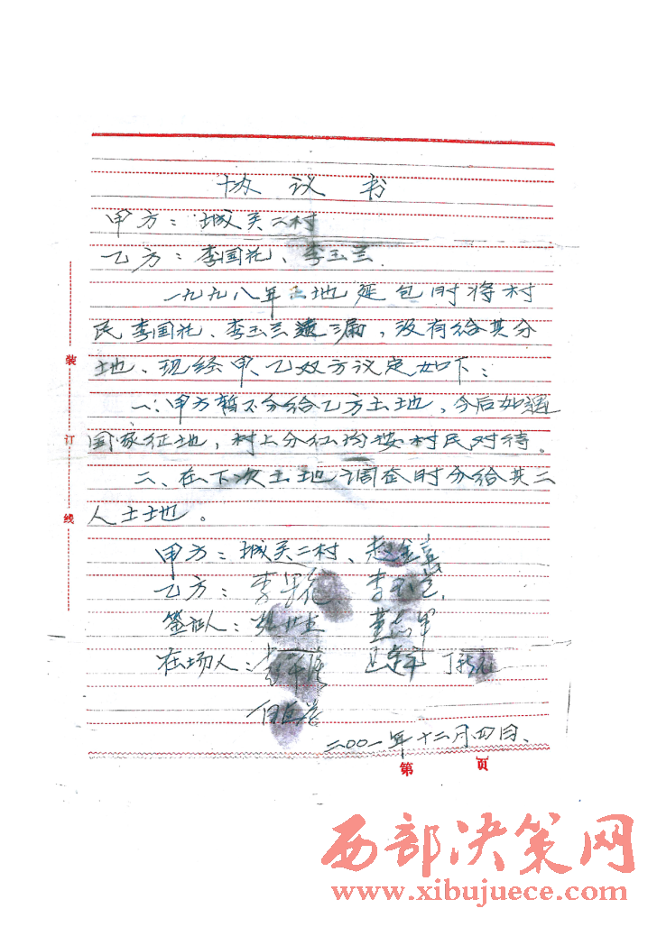 附:延安市中級人民法院民事裁定書和七里村鎮(zhèn)和城關(guān)二村李果花的協(xié)議書。
