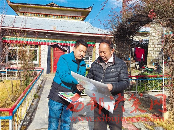 圖為林芝市統(tǒng)計(jì)局工作人員洛桑(左)向八一鎮(zhèn)巴吉村村民布珠宣講農(nóng)業(yè)普查相關(guān)知識(shí)。
