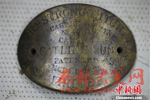 加特林機關(guān)槍的銘牌尚存。“丹東一號”水下考古隊供圖