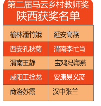 馬云公益基金會2016年6月15日公布第二屆馬云鄉(xiāng)村教師獎入圍名單,13省市區(qū)300位入圍老師中,陜西9地市有30人入圍。之后,13個省開始進行各省初評,陜西省初評由三秦都市報全媒體組織,并采訪報道。經(jīng)過陜西初評、復(fù)評,以及全國復(fù)評。2017年1月5日晚,100位獲獎老師名單出爐,其中陜西有10位老師獲獎。首屆有陜西等6省參評,陜西有17位老師獲獎。