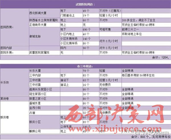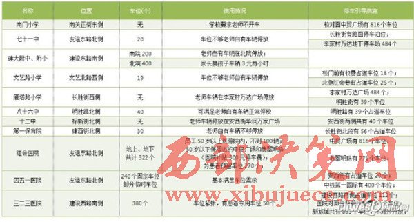 這些停車場的位置包括鐵一中、鐵五小、交大附中、附小和幼兒園周邊、市三中周邊、南門小學等學校周邊的可停車位;西安市第九醫(yī)院、紅十字會醫(yī)院、武警醫(yī)院等周邊的停車位。