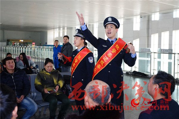 2017年鐵路春運于1月13日正式啟動。為營造春運良好氛圍,確保廣大旅客平安出行,新疆烏魯木齊鐵路公安局哈密公安處從機關和各派出所抽調100余名民警組建了10支“鐵警春運服務小分隊”,在轄區(qū)吐魯番、哈密等四個客運站和八個高鐵站,以開展防盜防騙宣傳、文藝互動演出、親民便民服務等舉措,打造“平安、有序、溫馨”春運。