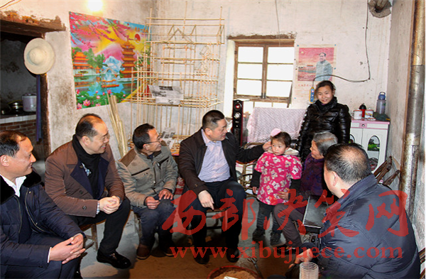縣長陳紅星在貧困戶家中(左四為陳紅星)