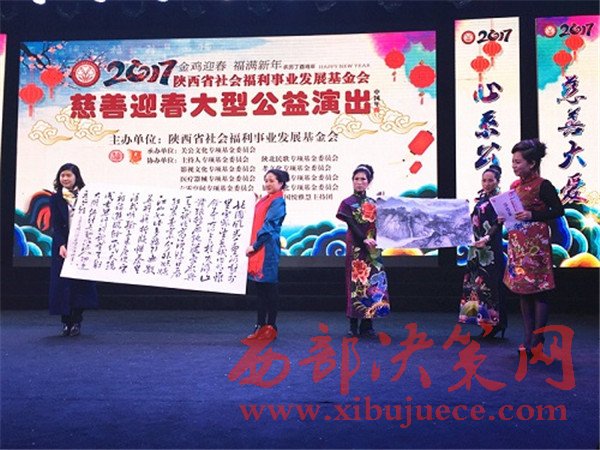 晚會(huì)上不僅有流連忘返的歌舞表演,同時(shí)眾多書畫大家也在晚會(huì)現(xiàn)場(chǎng)一一亮相。其中,中國(guó)著名書法家林中陽(yáng)先生還捐贈(zèng)了巨幅作品兩幅,助力本場(chǎng)晚會(huì)。此外,陜西宏源床上用品有限公司總經(jīng)理周星雷向本次晚會(huì)現(xiàn)場(chǎng)捐助人民幣10000元,以表達(dá)企業(yè)對(duì)慈善公益事業(yè)所盡的一份綿薄之力。