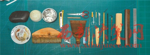修復(fù)所使用的馬蹄刀、三角刀、竹管排筆等各種工具。