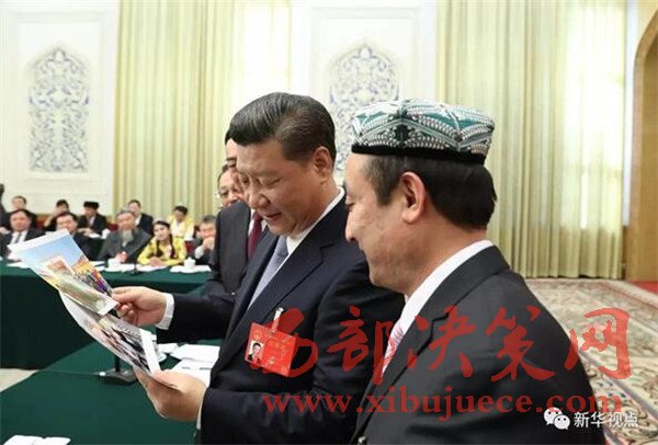 3月10日,中共中央總書記、國家主席、中央軍委主席習(xí)近平參加十二屆全國人大五次會議新疆代表團(tuán)的審議。