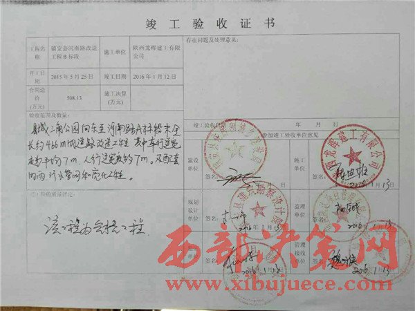 隨后,我社工作人員來(lái)到鎮(zhèn)安縣城建局反映問(wèn)題,城建局稱:“工程于2016年1月份竣工,現(xiàn)已移交城管局,不屬于我們管”。并拿出了工程竣工證書,證書上證明此工程已移交城管局。