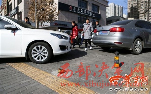 昨日上午,華商報記者在長延居小區(qū)門口看到,那個黑停車場可以免費停車,沒人看管,地樁也被去掉了,有的車停放在盲道上。附近群眾說,沒人看管之后,這里更亂了,到了晚上,車停得連路都沒辦法走。