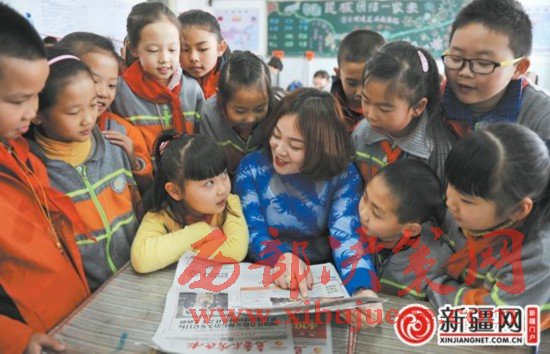 3月17日,在市第73小學(xué)三(6)班,班主任楊蓉和同學(xué)們一起學(xué)習(xí)習(xí)近平總書記在參加十二屆全國(guó)人大五次會(huì)議新疆代表團(tuán)審議時(shí)的重要講話精神。