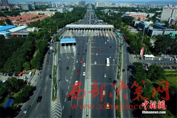 圖為從空中俯瞰京藏高速上的某收費站。