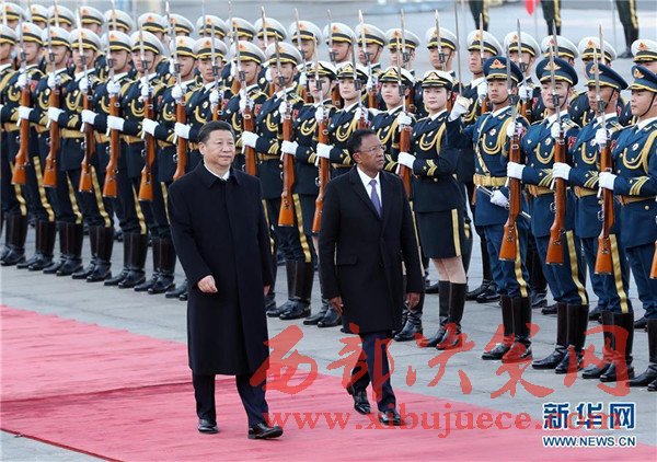 3月27日,國家主席習(xí)近平在北京人民大會堂同馬達加斯加總統(tǒng)埃里舉行會談。這是會談前,習(xí)近平在人民大會堂東門外廣場為埃里舉行歡迎儀式。