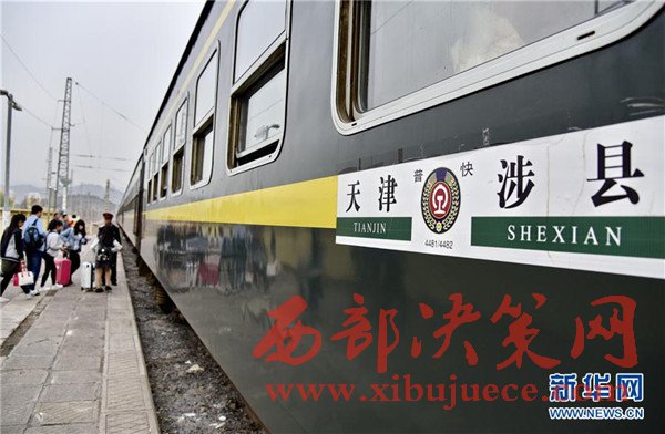 4月15日,旅客在涉縣火車站登上4482次列車。當(dāng)日,北京鐵路局河北涉縣至天津間的4482次“綠皮車”開始最后一次“旅行”。從4月16日起,全國鐵路實(shí)施新的列車運(yùn)行圖,此次列車將升級更換為快速空調(diào)列車,運(yùn)營多年的該線路綠皮火車將告別鐵路舞臺(tái)。