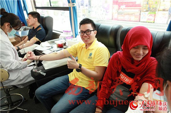4月22日上午,在重慶市沙坪壩區(qū)三峽廣場,來自在華印尼留學生協(xié)會重慶分會的52名留學生在中國人民解放軍重慶血站西南醫(yī)院流動獻血車進行了獻血。據(jù)悉,在重慶各大學的印尼留學生約有130人,主要就讀于重慶大學、重慶醫(yī)科大學、西南大學、重慶郵電大學、四川外國語學院、重慶工商大學等,這是在華印尼留學生協(xié)會重慶分會留學生第二次集中獻血活動。
