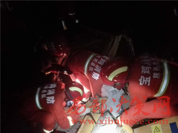 西部決策網(wǎng)-西部大開發(fā)訊(帥華鋒 杜杰 通訊員 史璐峣))4月25日19:09分,寶雞市拓石鎮(zhèn)仙龍村一輛裝載機側翻山崖,兩名駕駛人員被困。渭濱公安消防大隊巨福路中隊接指揮中心接警后立即出動兩輛水罐消防車官兵12人趕赴現(xiàn)場。途中與報警人聯(lián)系被困人員位于20米深的山崖里,已無生命體征。