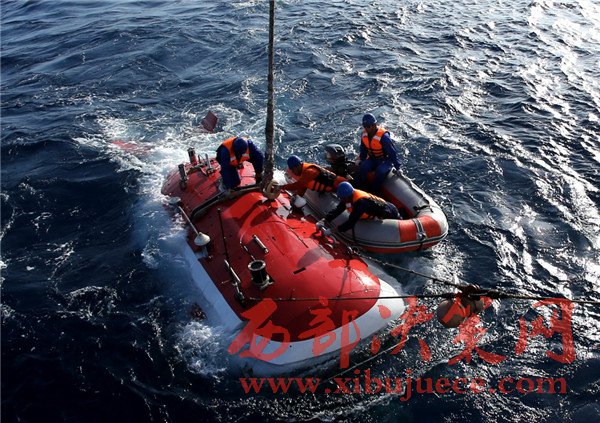 5月10日,“蛙人”系纜,“蛟龍”號(hào)完成下潛準(zhǔn)備回到“向陽(yáng)紅09”科學(xué)考察船上。
