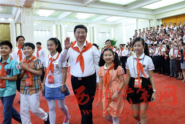 2015年6月1日,習(xí)近平在北京人民大會(huì)堂親切會(huì)見(jiàn)中國(guó)少年先鋒隊(duì)第七次全國(guó)代表大會(huì)全體代表。