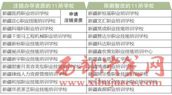 11所新疆維吾爾自治區(qū)本級民辦職業(yè)培訓(xùn)學(xué)校被注銷資質(zhì)