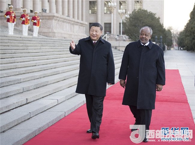 國(guó)家主席習(xí)近平23日在人民大會(huì)堂同來(lái)華進(jìn)行國(guó)事訪(fǎng)問(wèn)的吉布提總統(tǒng)蓋萊舉行會(huì)談。兩國(guó)元首一致同意,建立中吉戰(zhàn)略伙伴關(guān)系,全面深化兩國(guó)各領(lǐng)域合作。
