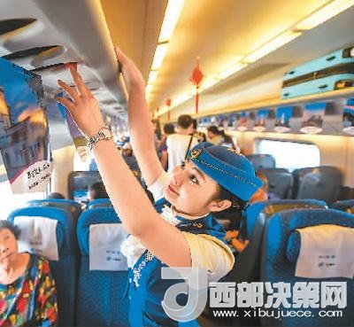 8月3日,在內(nèi)蒙古自治區(qū)烏蘭察布開往呼和浩特東站的列車上,乘務(wù)員在整理行李架。如今,中國(guó)高鐵不僅成為百姓的出行首選,更成為閃亮的國(guó)家名片。