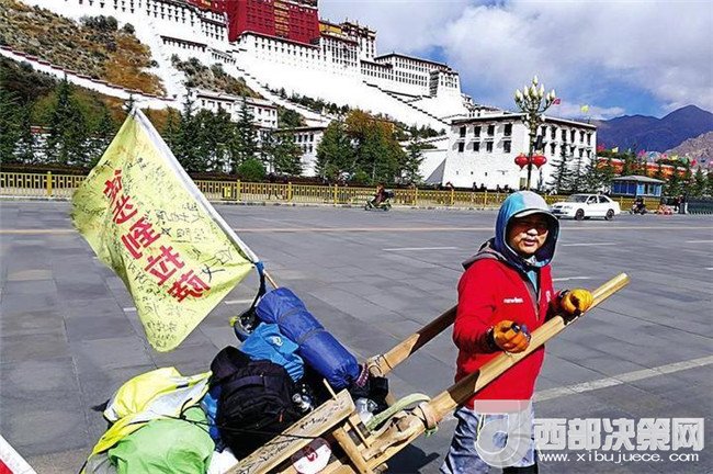 “從陜西到拉薩,3300多公里,路途遙遠,光車子輪胎我就換了3條,還磨壞了3根車軸,但是我堅持了下來,終于到了拉薩,到了終點,我成功了。”