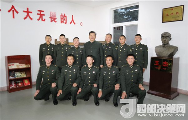 12月13日,中共中央總書記、國家主席、中央軍委主席習近平到第71集團軍視察。這是習近平同“王杰班”戰(zhàn)士合影。(記者 李剛 攝)