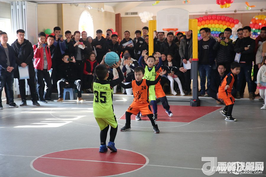 西北工業(yè)大學(xué)幼兒園教師董樂帶領(lǐng)小朋友展示籃球教學(xué)活動(dòng)。